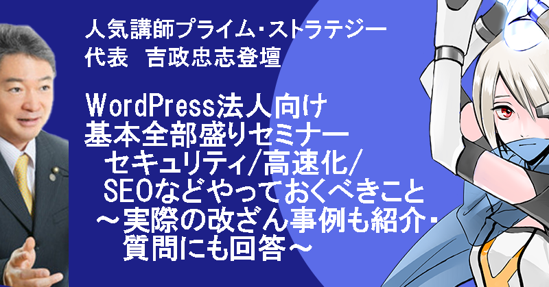 大人気)WordPress法人向け基本全部盛り)セキュリティ/高速化/SEOなどやっておくべきこと~実際の改ざん事例も紹介・質問にも回答~(追加開催)